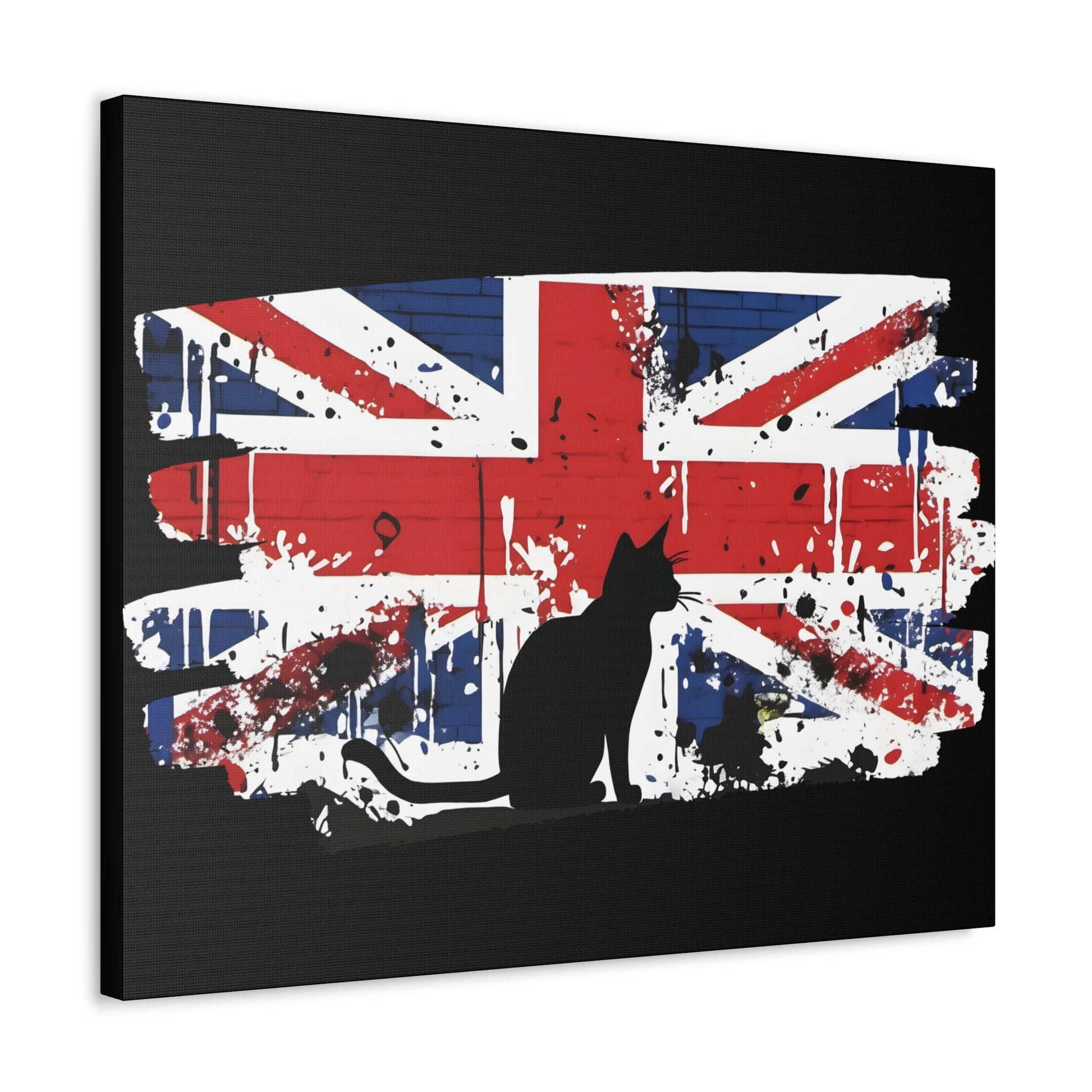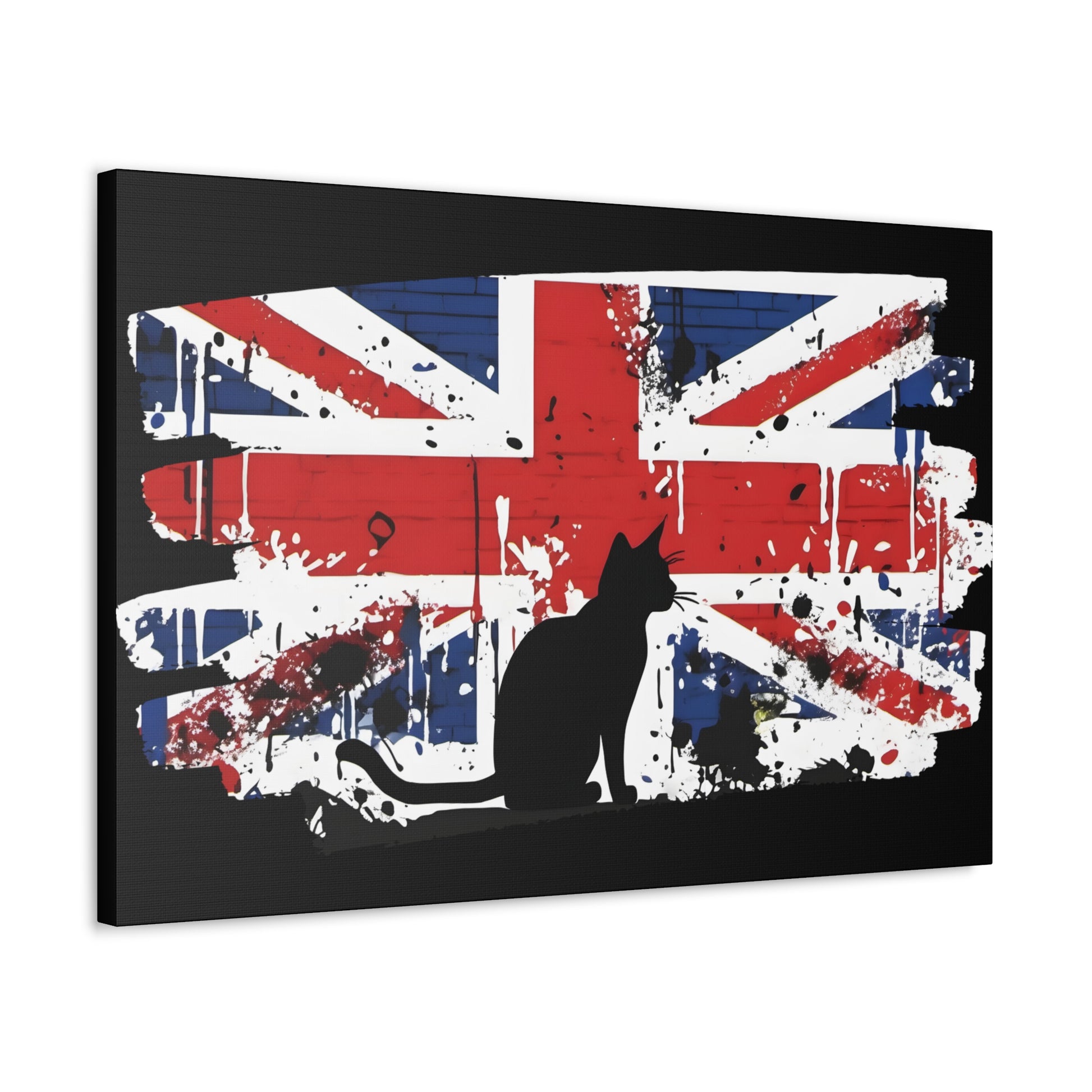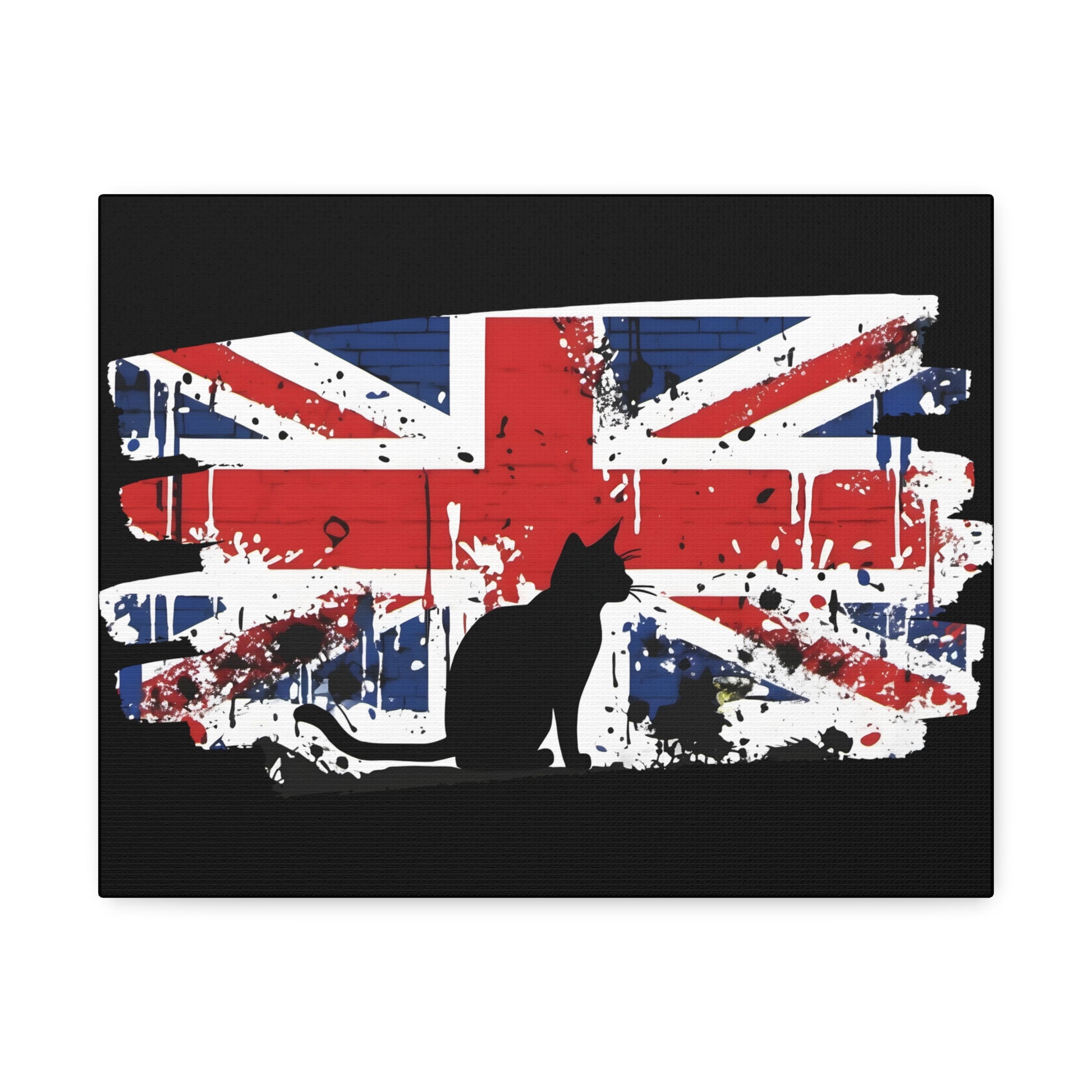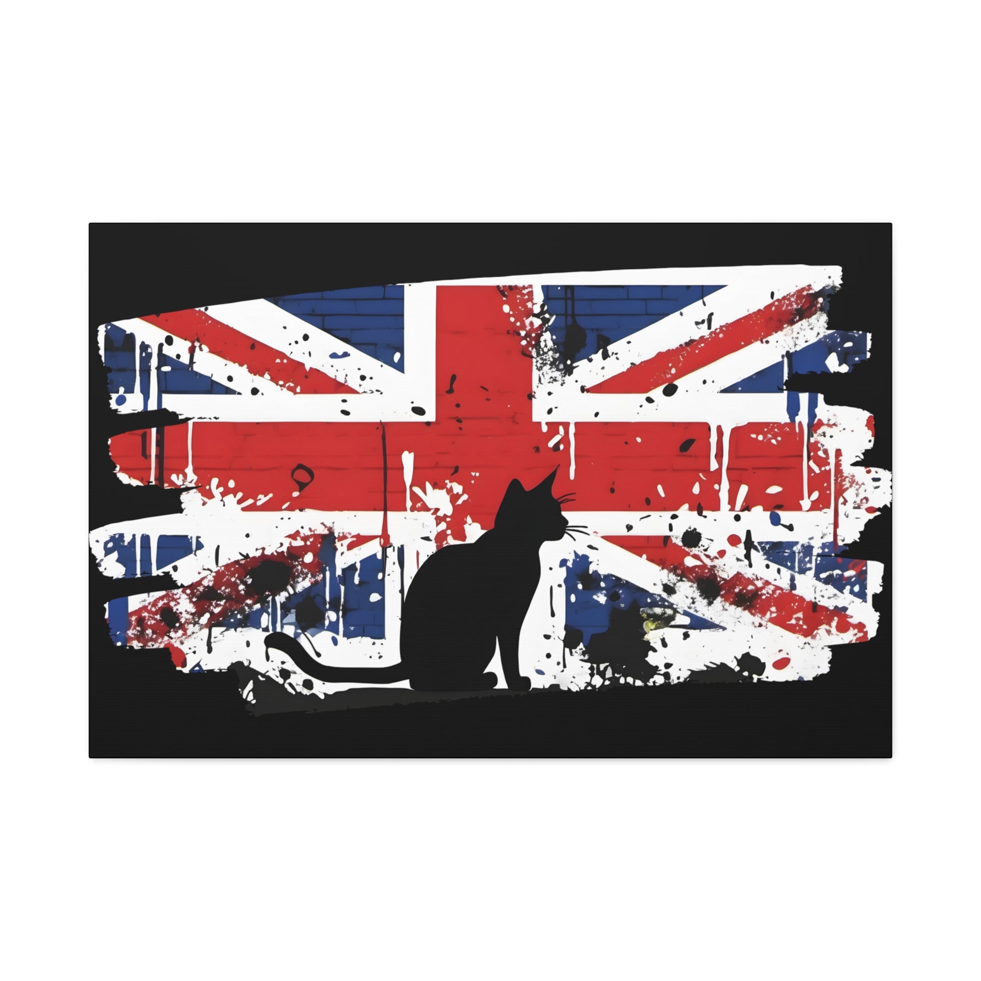 Embrace the rebellious spirit of street art with our canvas print, featuring an iconic Banksy-style depiction of the Union Jack flag and a cat. This striking artwork pays homage to the essence of British culture, blending patriotism with urban edge. Printed on a pre-stretched canvas, each piece comes with a sturdy wooden inner frame for easy display. Available in a range of sizes from 8" by 10" to 36" by 24", this canvas graffiti print is a versatile addition to any space. Crafted with premium materials, this canvas boasts 100% polyester construction, ensuring durability and vibrant colours that pop against any backdrop. The wooden inner frame provides stability, while metallic mounts on the back of the canvas allow for effortless hanging. This graffiti print offers a bold statement for your home, office, or studio decor. The dynamic fusion of the Union Jack flag captures the essence of British pride and urban flair. Add a touch of rebellious charm to your space with our canvas print, a celebration of British culture and urban artistry. Whether you're a fan of Banksy's style or simply drawn to the boldness of street art, this canvas print is sure to make a statement. Features: Made with 100% Polyester Includes a wooden inner frame for stability Features metallic mounts on the back of the canvas for easy hanging Available in various sizes from 8" by 10" to 36" by 24" Intended for indoor use