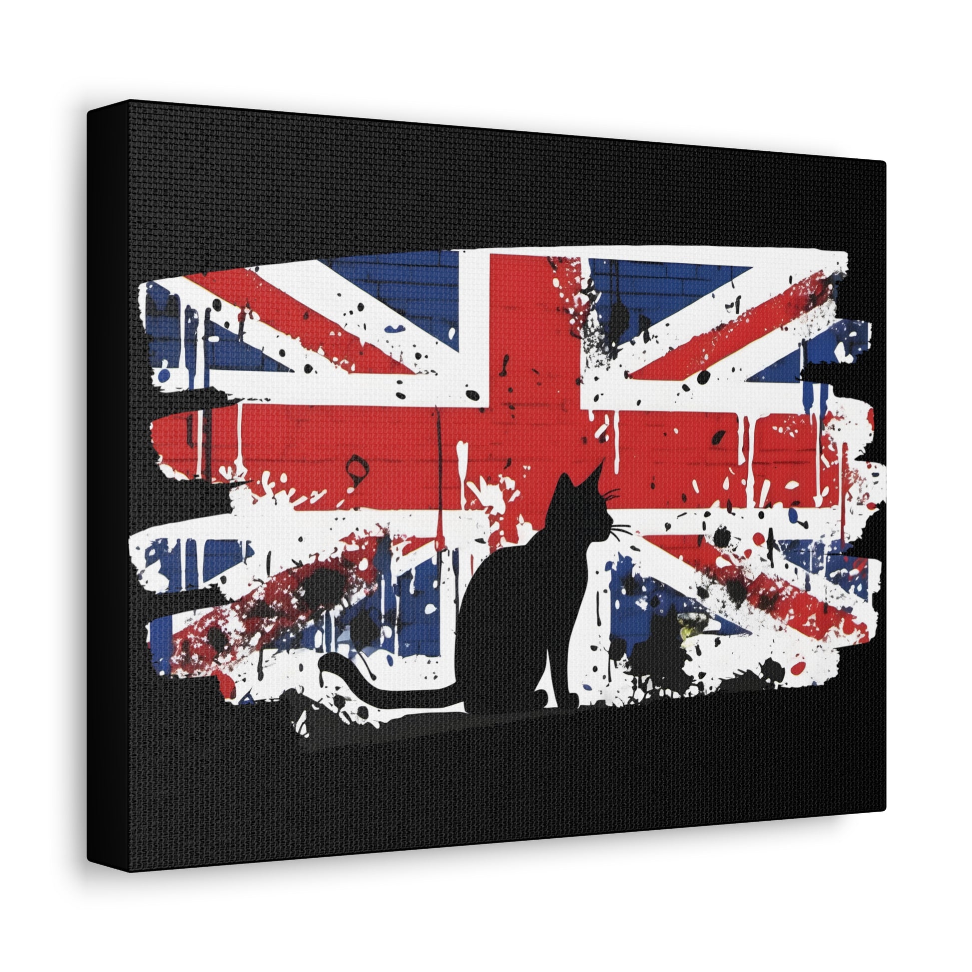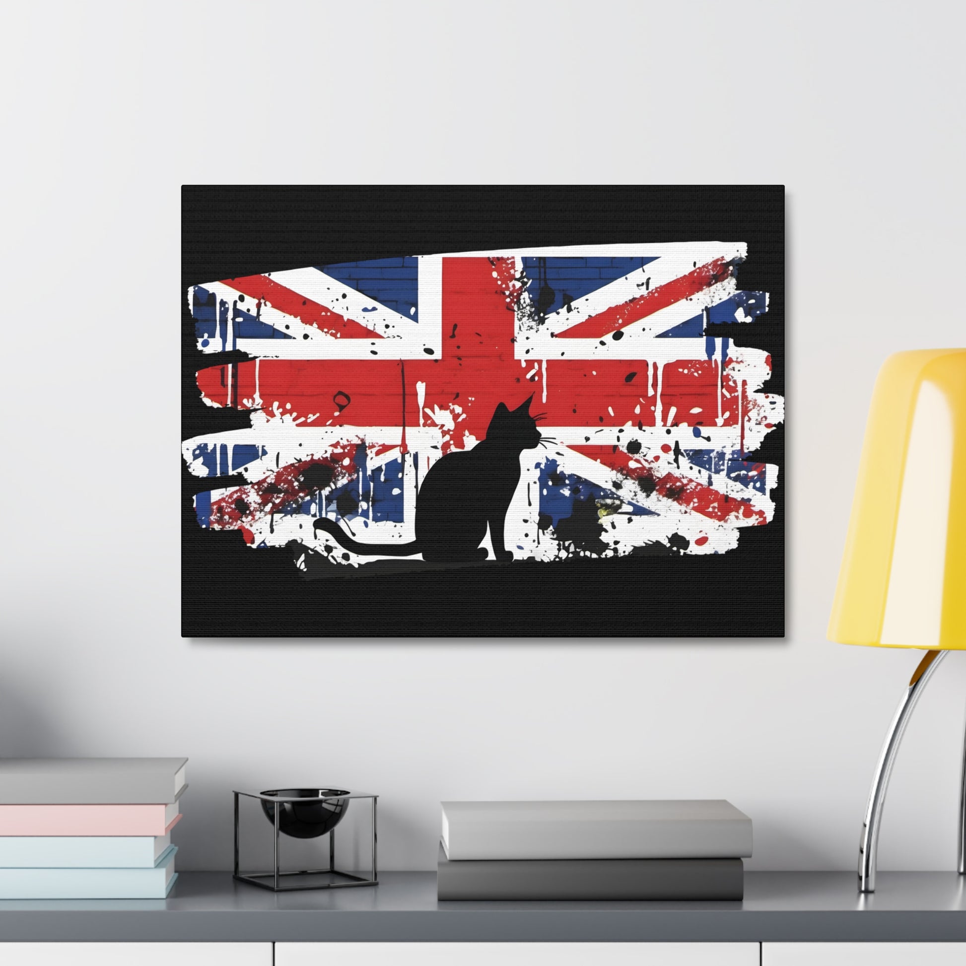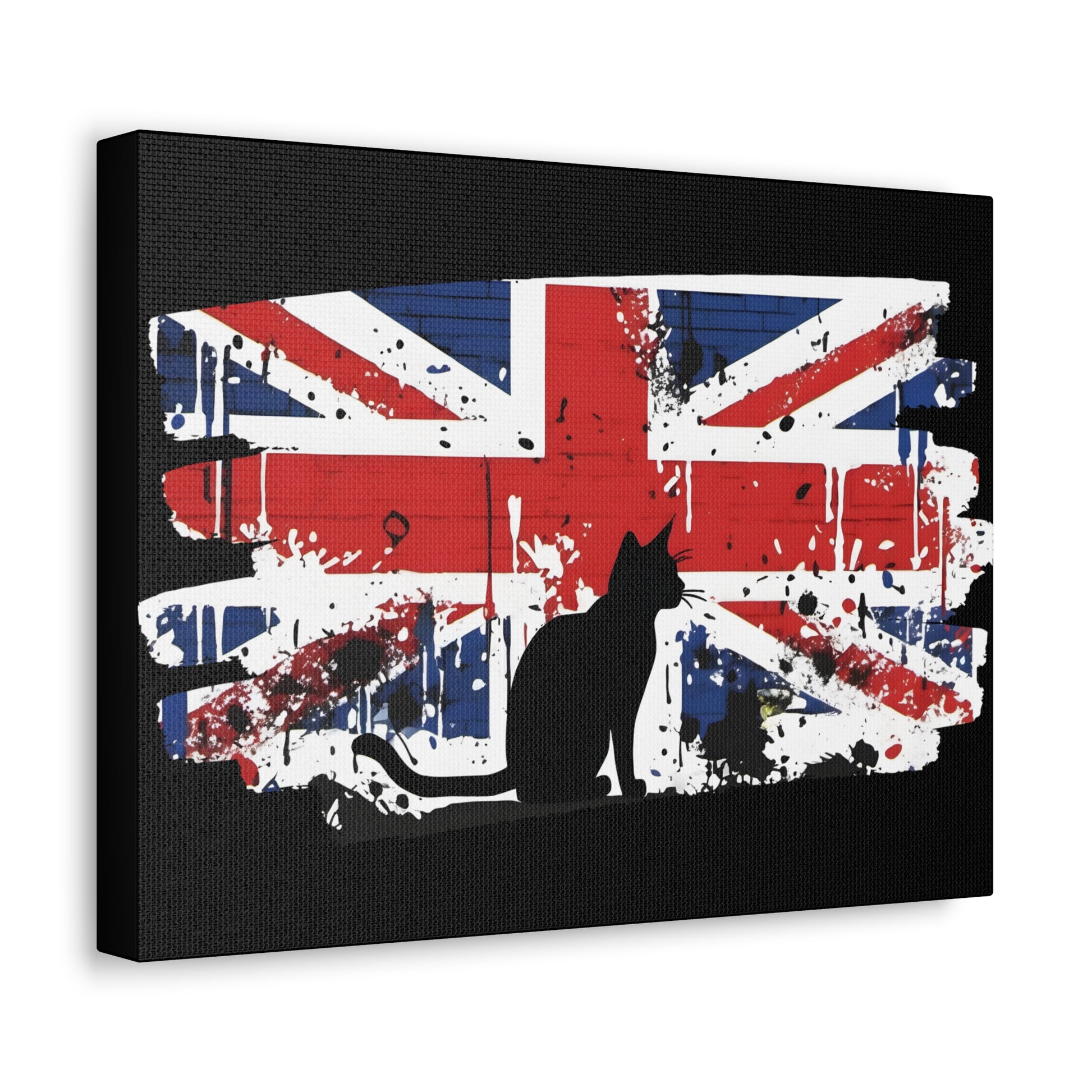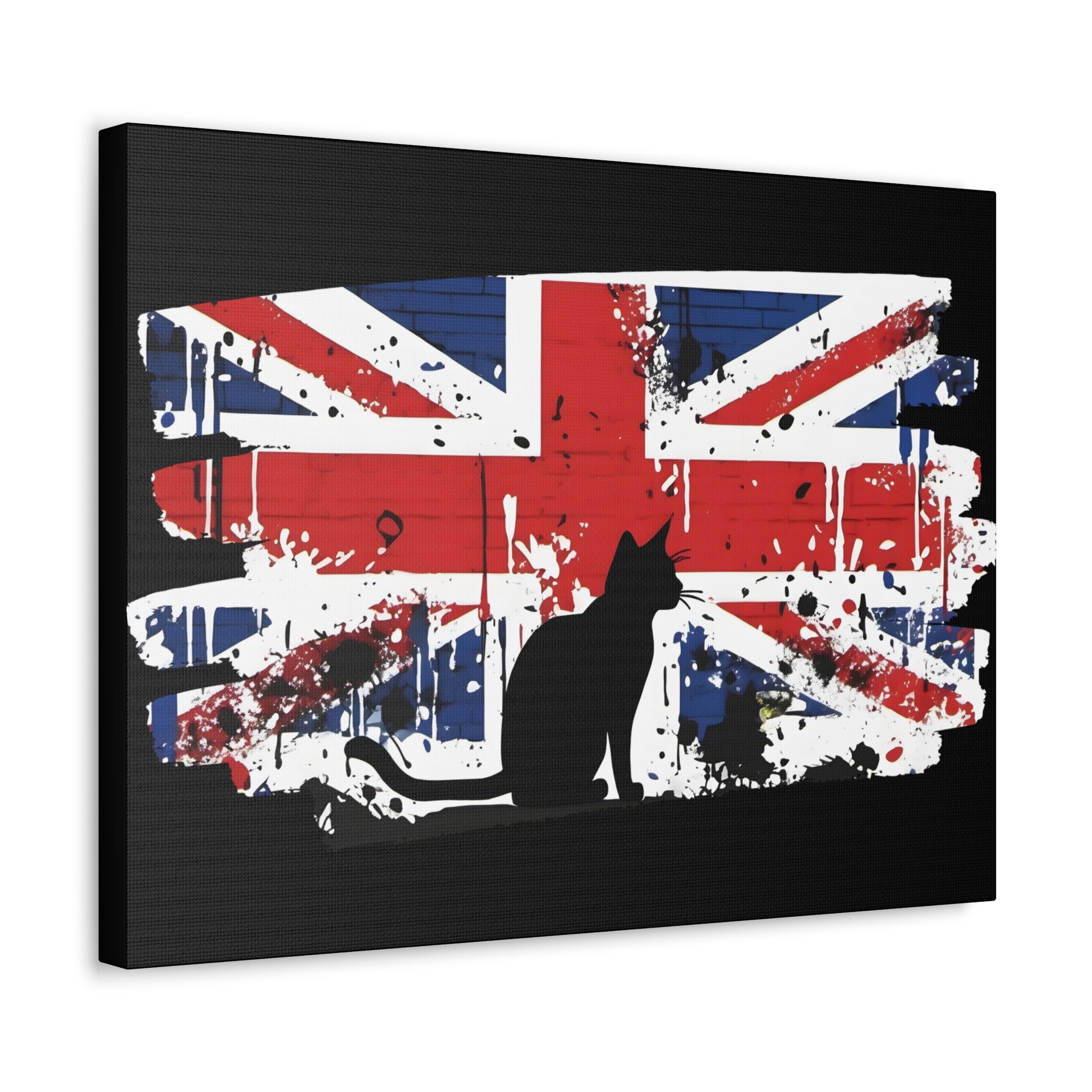 Embrace the rebellious spirit of street art with our canvas print, featuring an iconic Banksy-style depiction of the Union Jack flag and a cat. This striking artwork pays homage to the essence of British culture, blending patriotism with urban edge. Printed on a pre-stretched canvas, each piece comes with a sturdy wooden inner frame for easy display. Available in a range of sizes from 8" by 10" to 36" by 24", this canvas graffiti print is a versatile addition to any space. Crafted with premium materials, this canvas boasts 100% polyester construction, ensuring durability and vibrant colours that pop against any backdrop. The wooden inner frame provides stability, while metallic mounts on the back of the canvas allow for effortless hanging. This graffiti print offers a bold statement for your home, office, or studio decor. The dynamic fusion of the Union Jack flag captures the essence of British pride and urban flair. Add a touch of rebellious charm to your space with our canvas print, a celebration of British culture and urban artistry. Whether you're a fan of Banksy's style or simply drawn to the boldness of street art, this canvas print is sure to make a statement. Features: Made with 100% Polyester Includes a wooden inner frame for stability Features metallic mounts on the back of the canvas for easy hanging Available in various sizes from 8" by 10" to 36" by 24" Intended for indoor use
