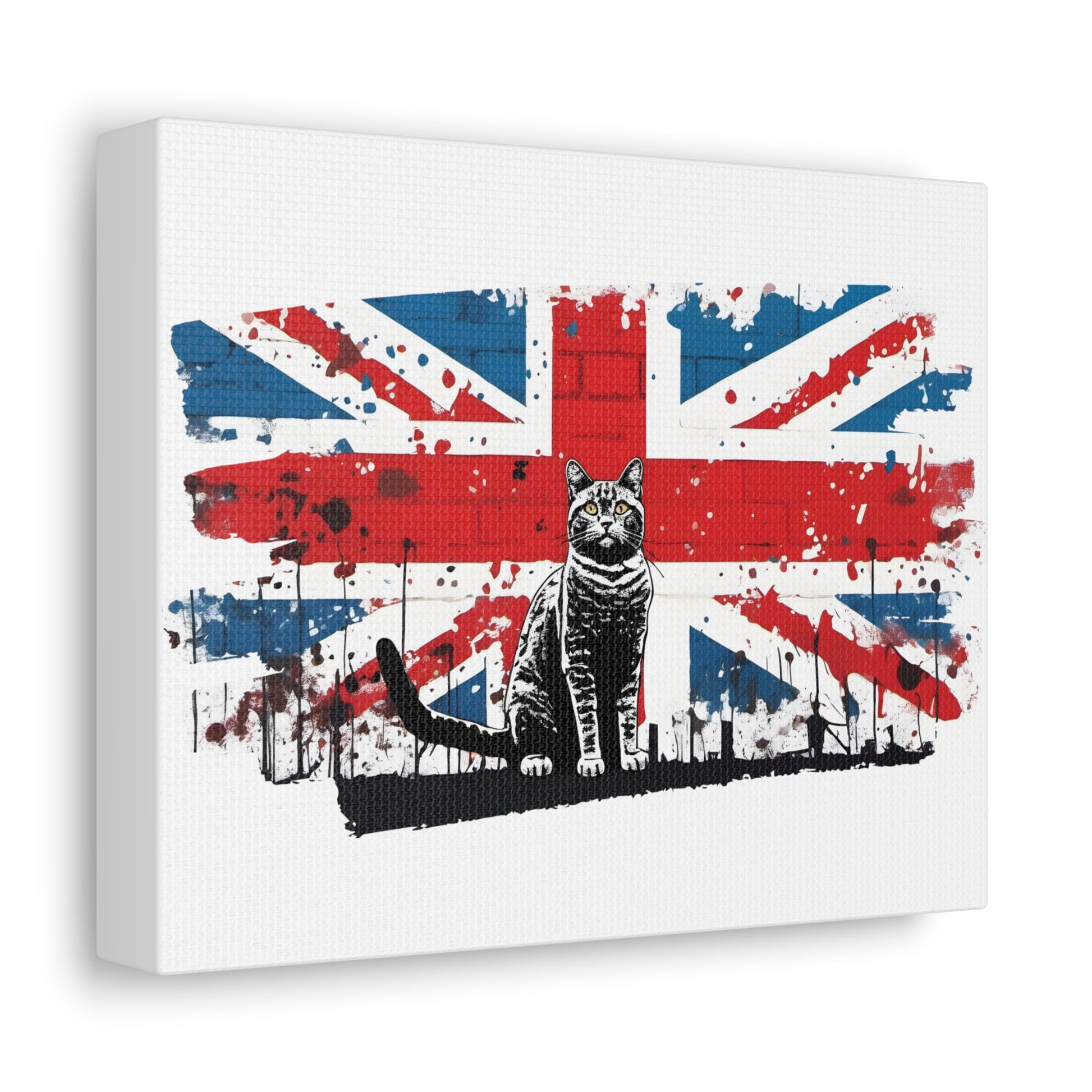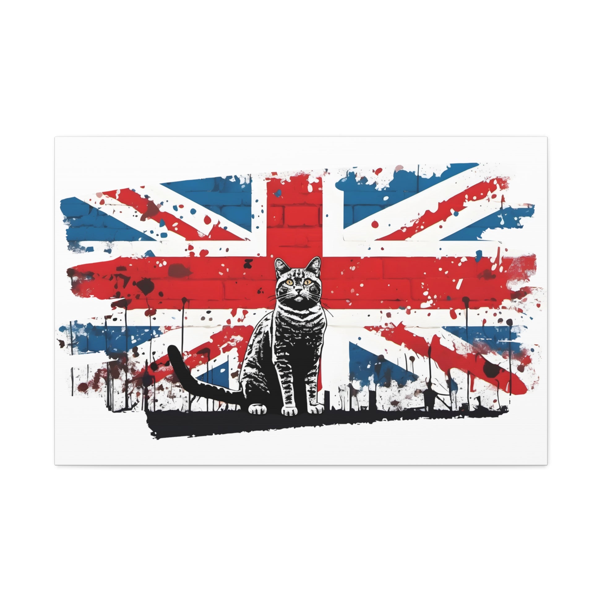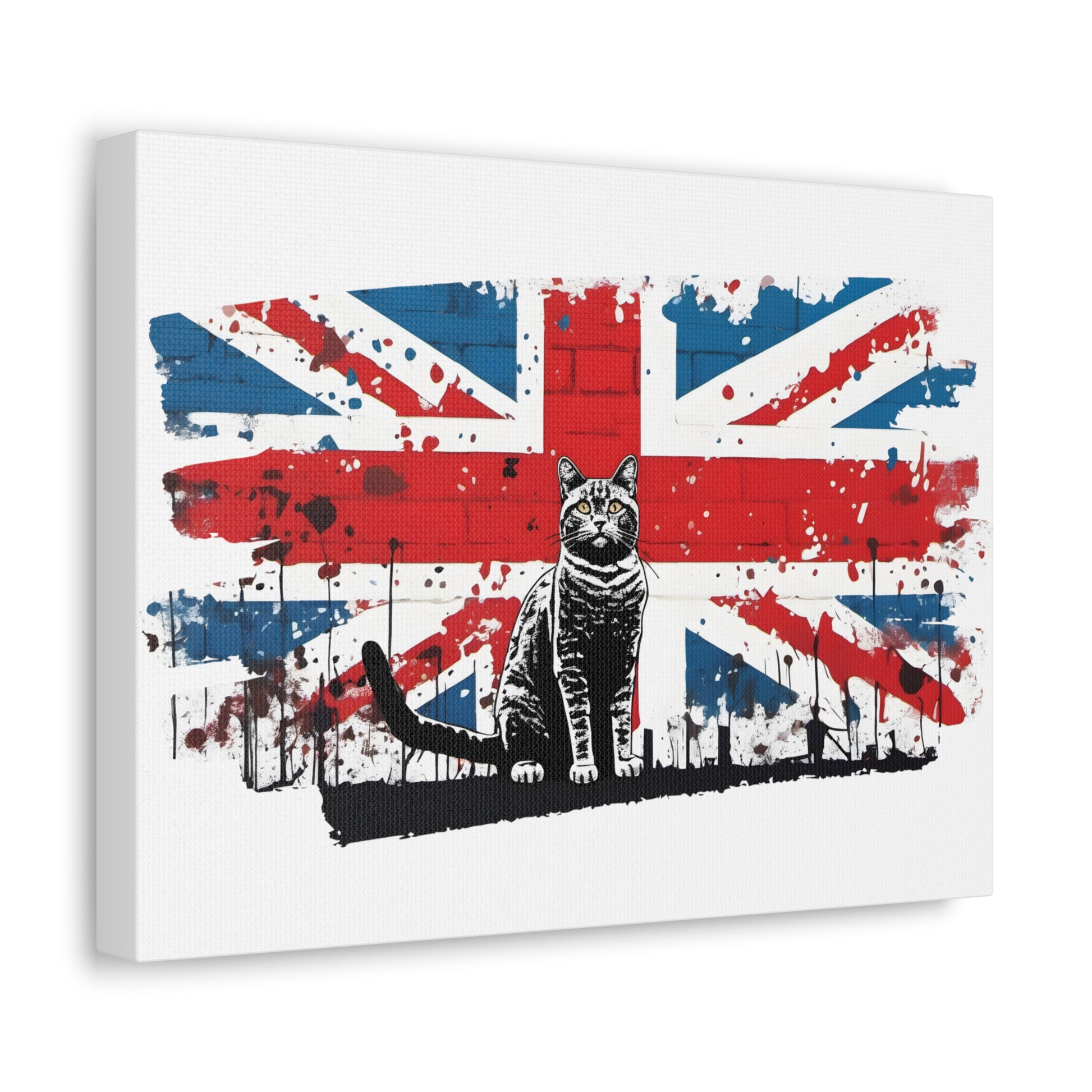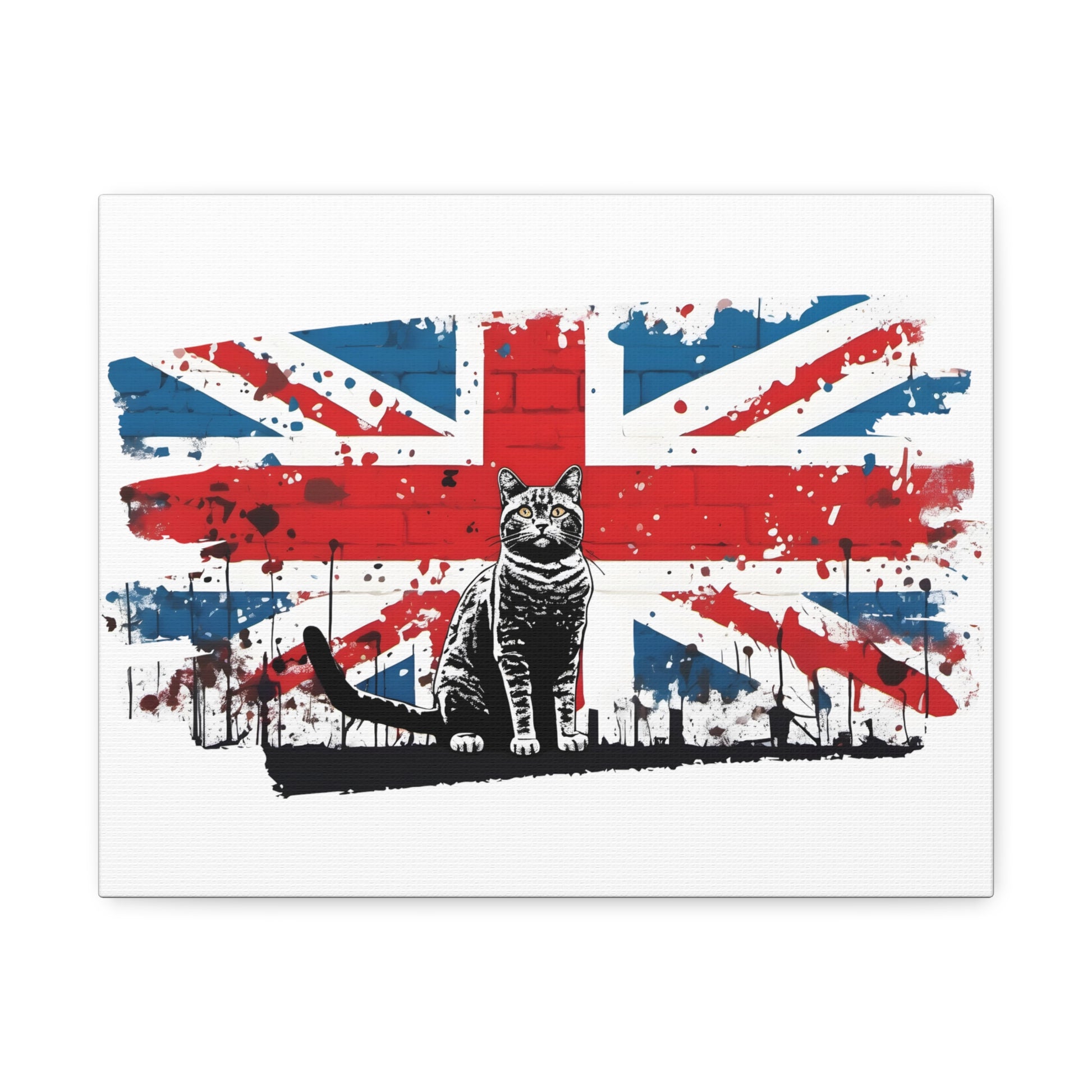 Embrace the rebellious spirit of street art with our canvas print, featuring an iconic Banksy-style depiction of the Union Jack flag and a cat. This striking artwork pays homage to the essence of British culture, blending patriotism with urban edge.