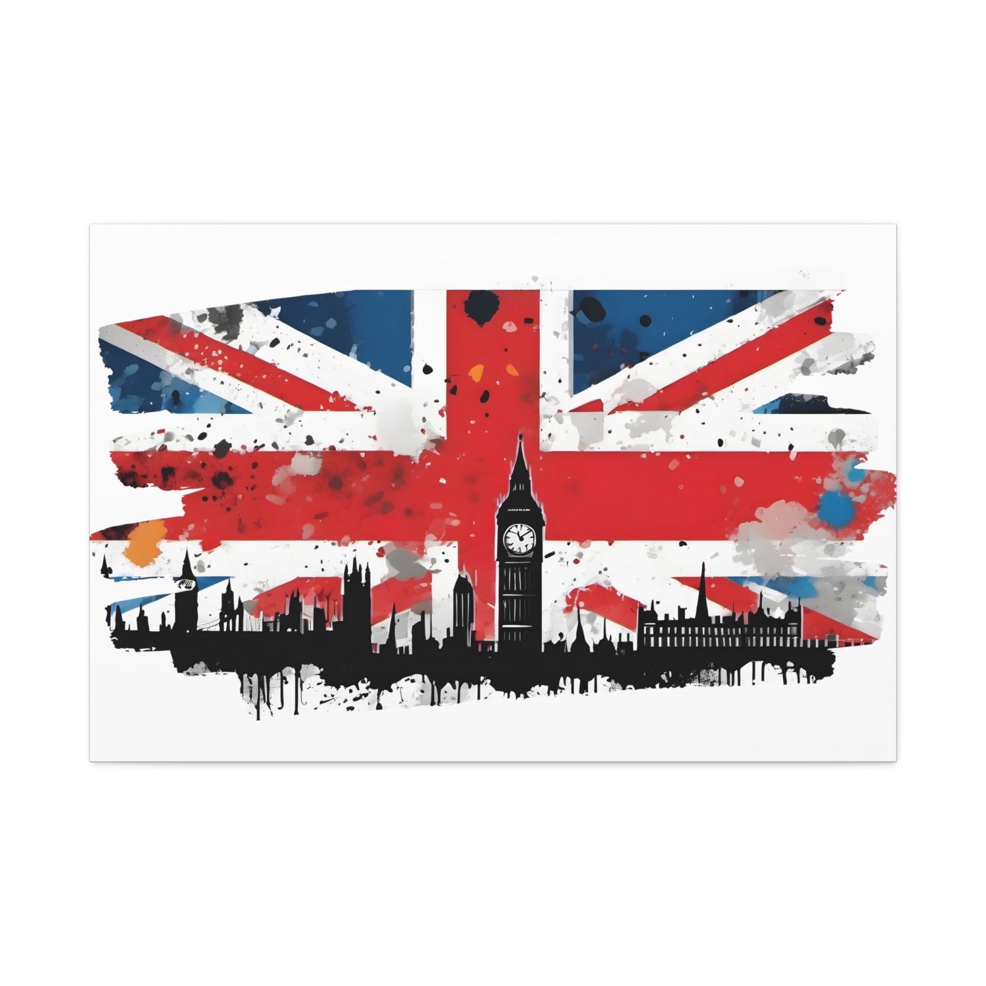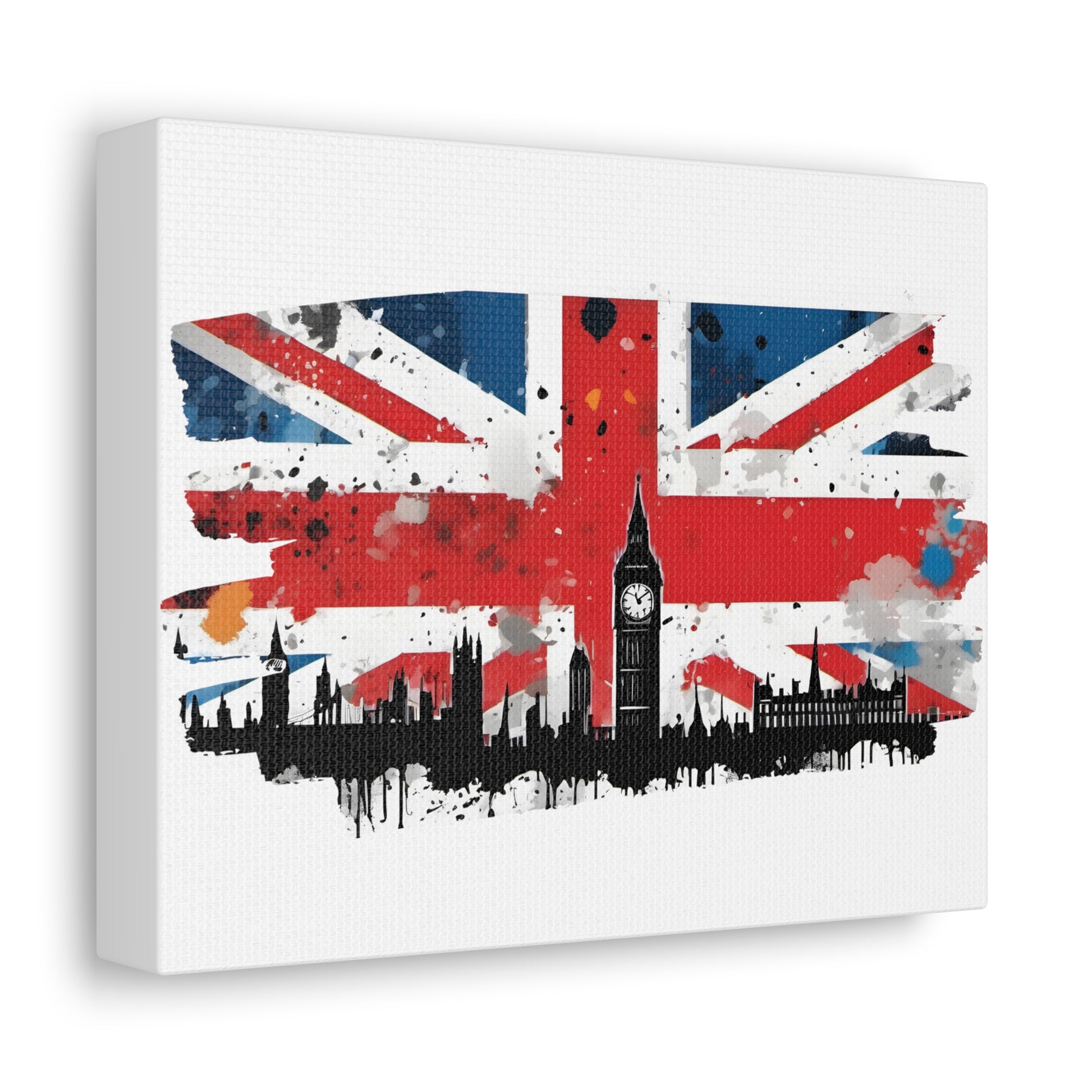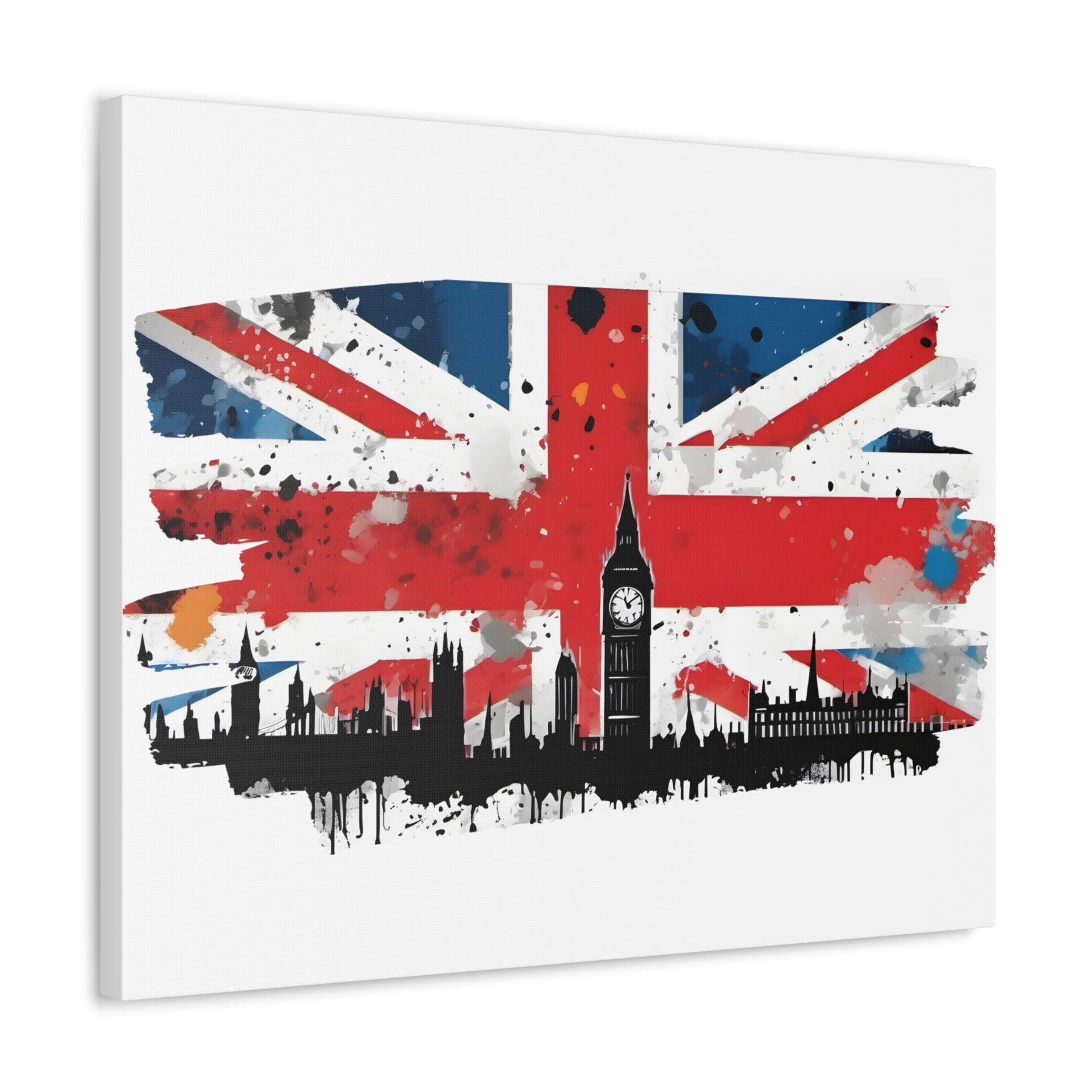 Embrace the rebellious spirit of street art with our canvas print, featuring an iconic Banksy-style depiction of the Union Jack flag intertwined with the London skyline. This striking artwork pays homage to the essence of British culture, blending patriotism with urban edge.