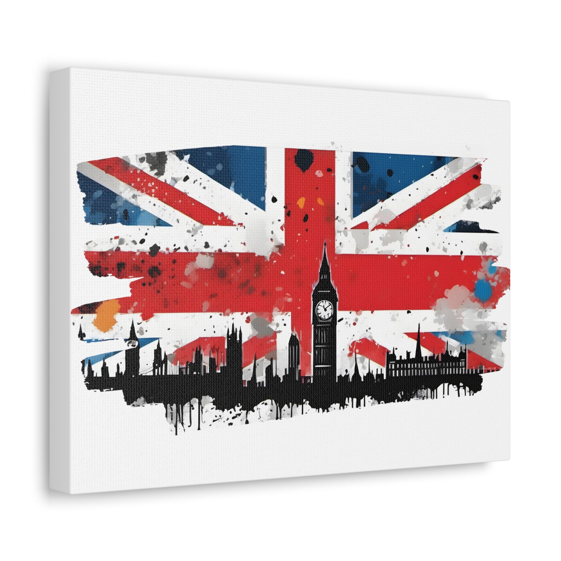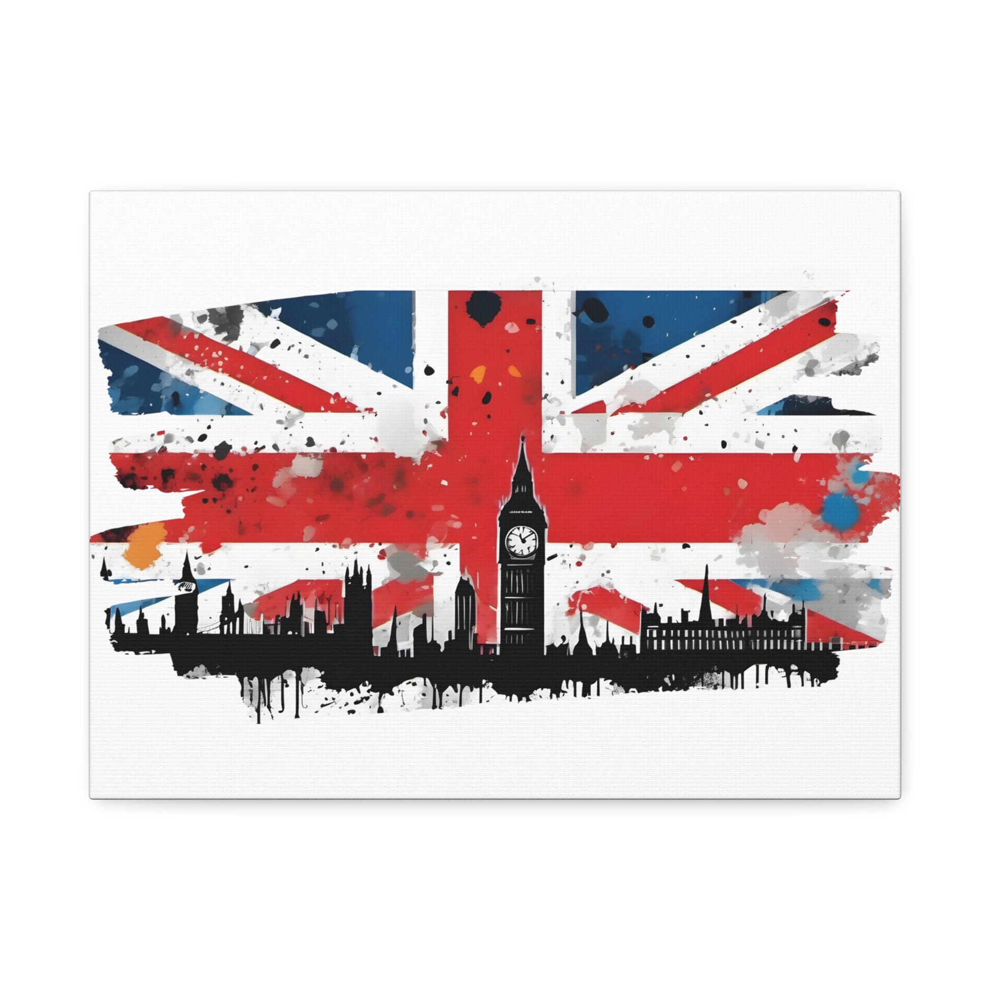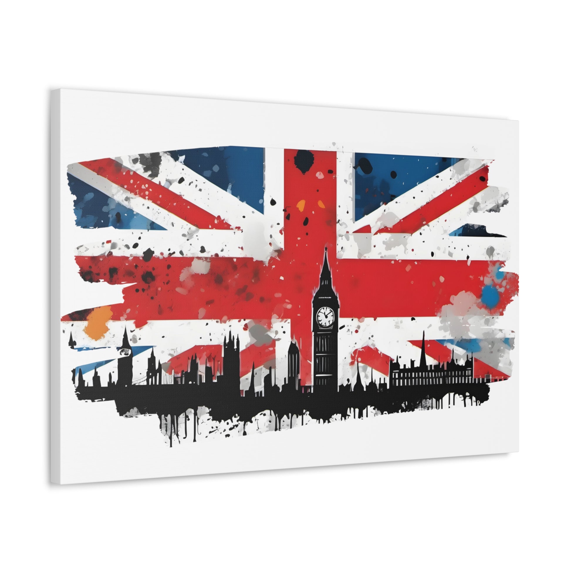 Embrace the rebellious spirit of street art with our canvas print, featuring an iconic Banksy-style depiction of the Union Jack flag intertwined with the London skyline. This striking artwork pays homage to the essence of British culture, blending patriotism with urban edge.