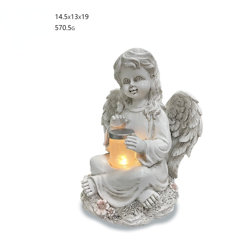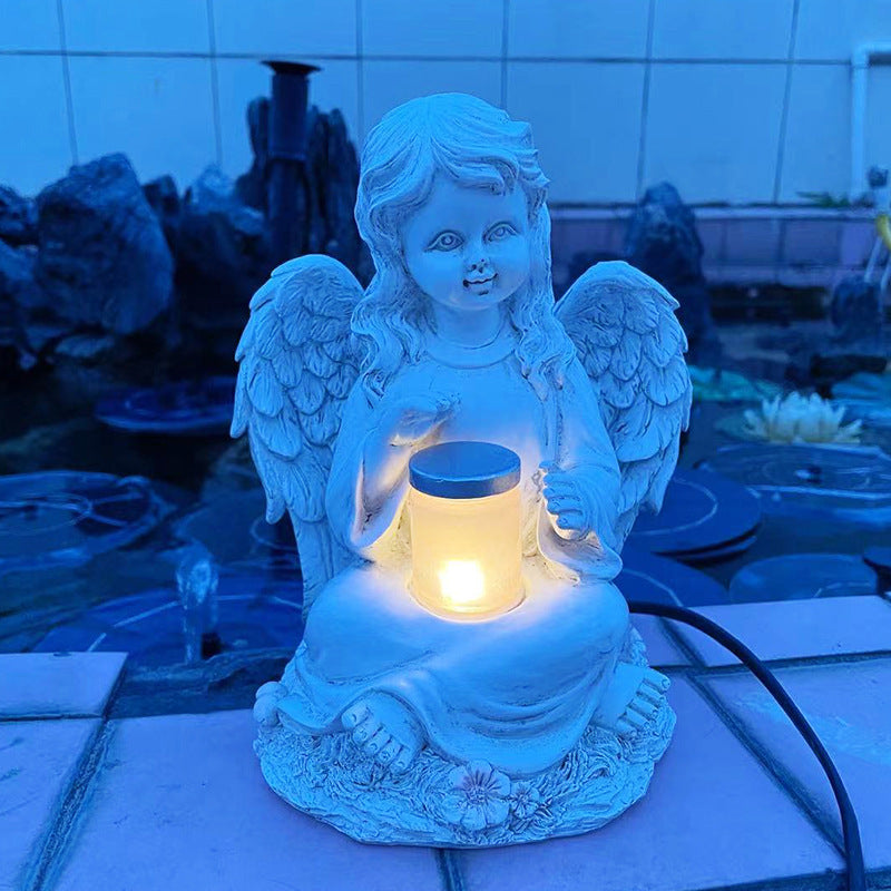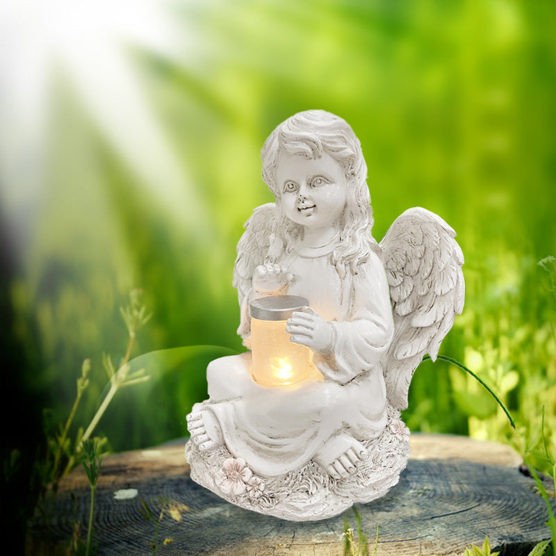 LED Solar Light Resin Angel Boy Craft Waterproof Outdoor Lawn & Garden Stakes Lamps Yard Art for Home Yard Decoration