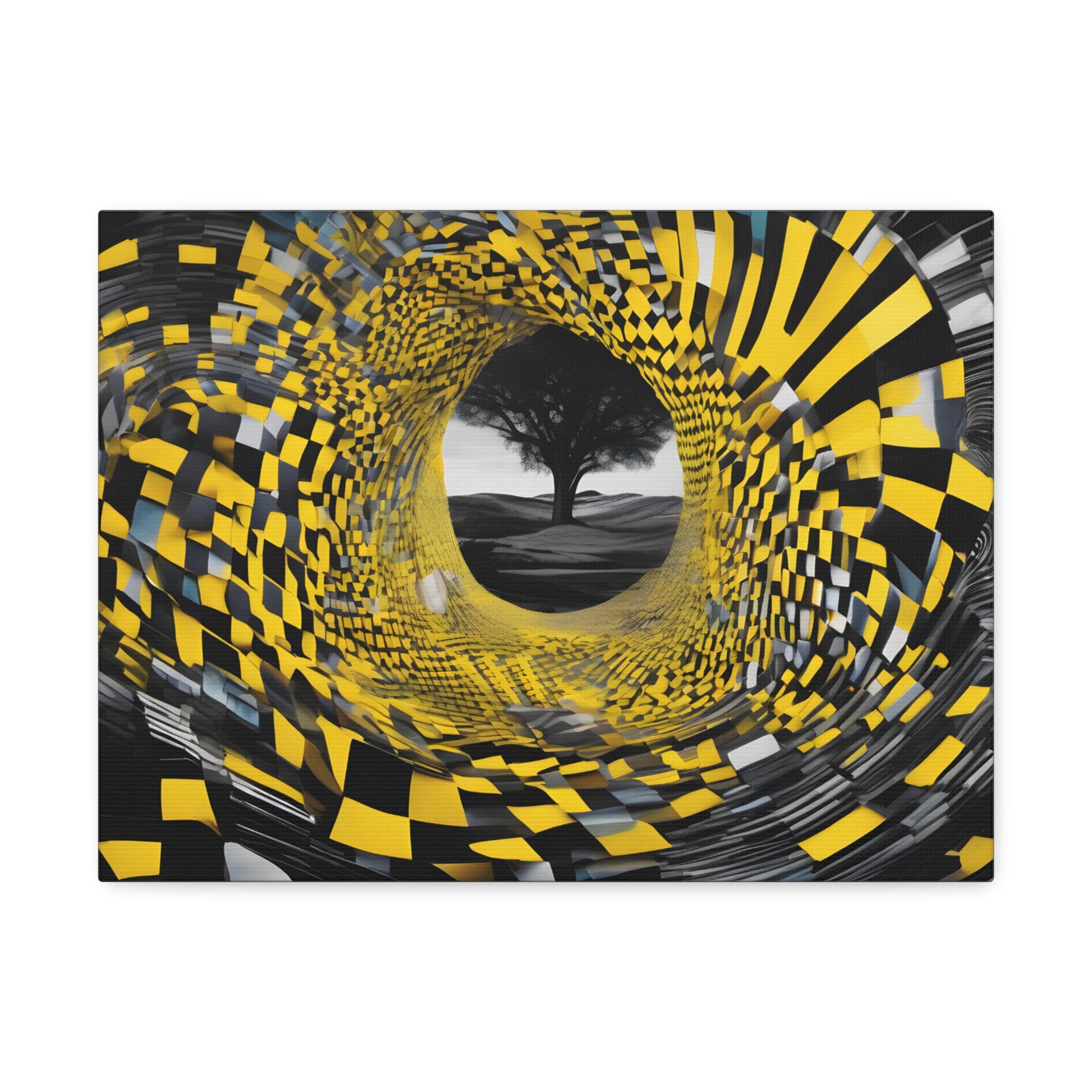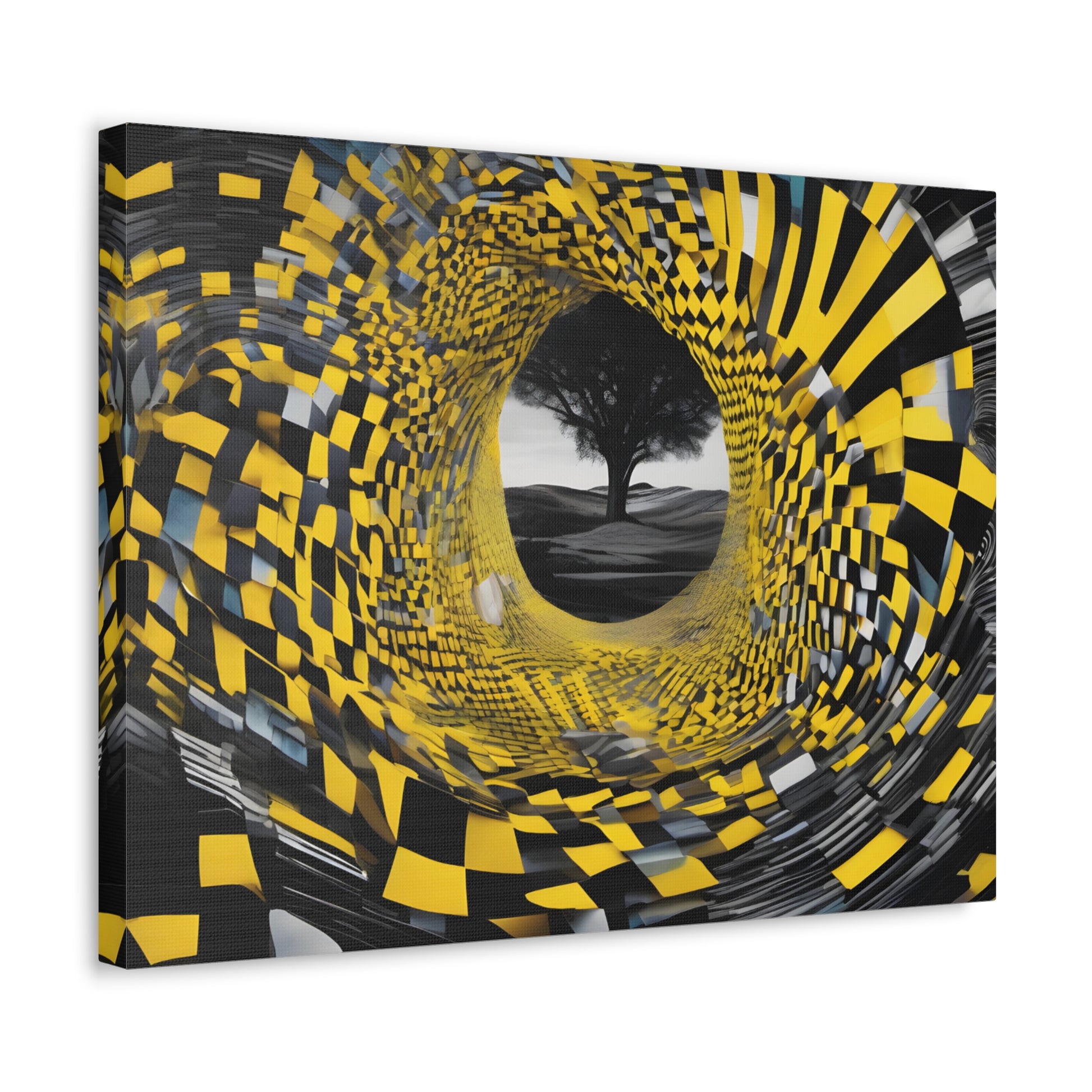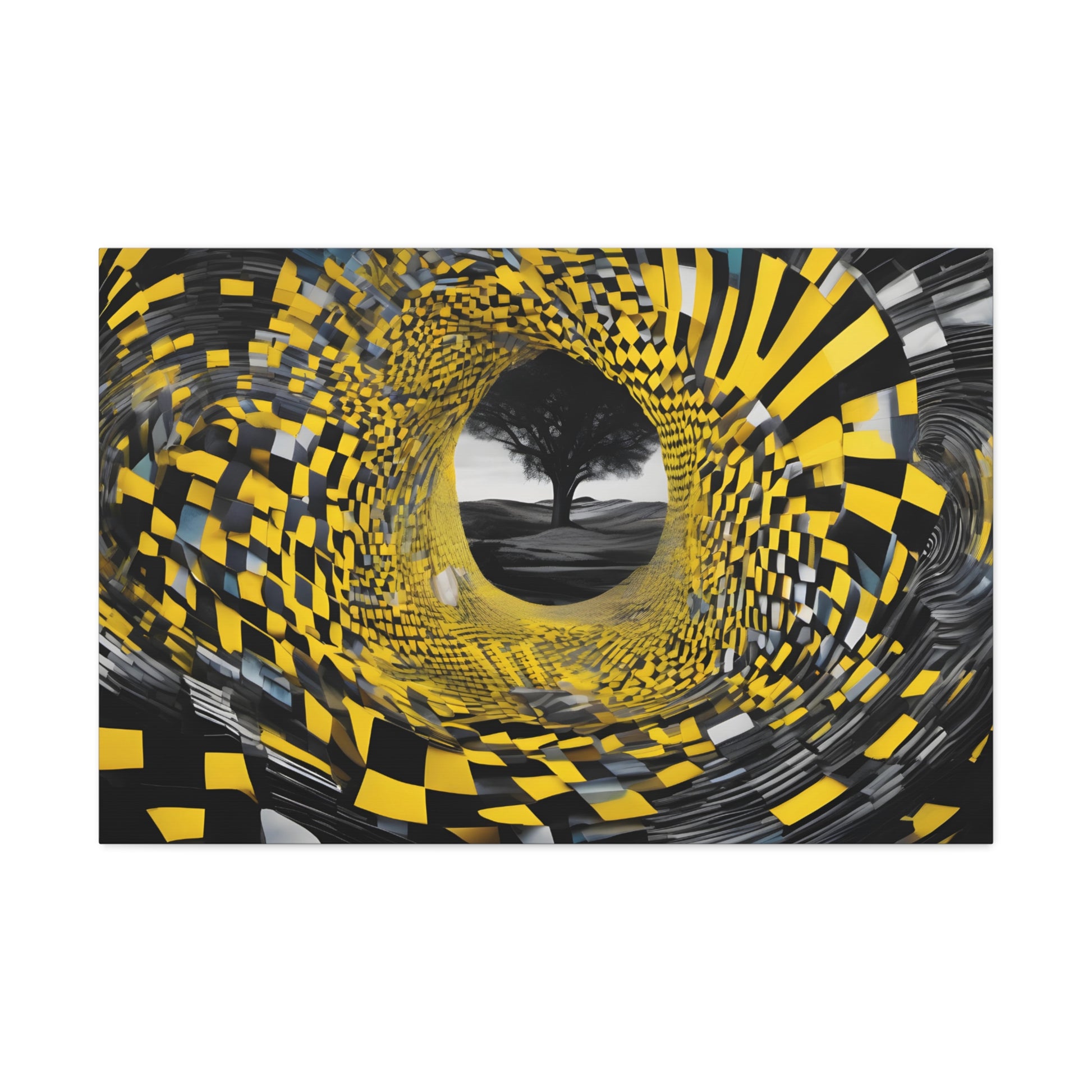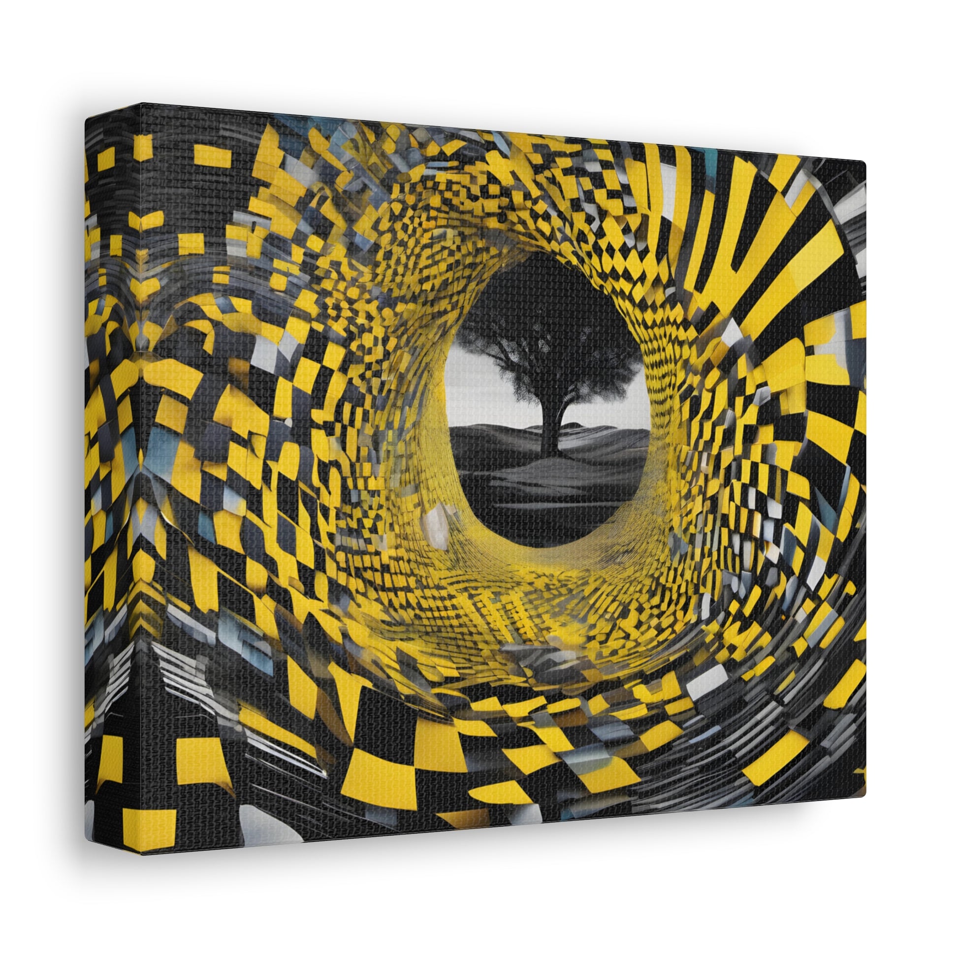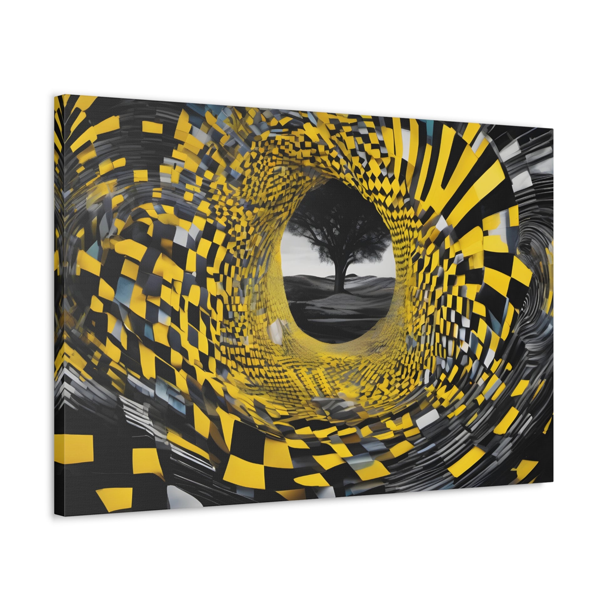 Transport yourself into a world of mystery and imagination with our yellow and black tunnel abstract art.