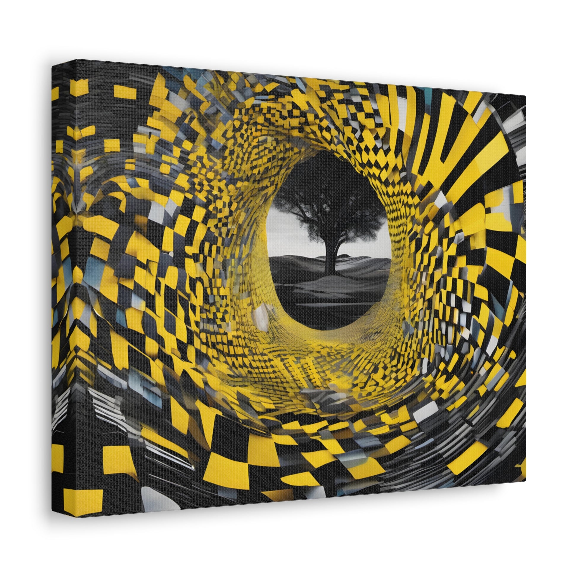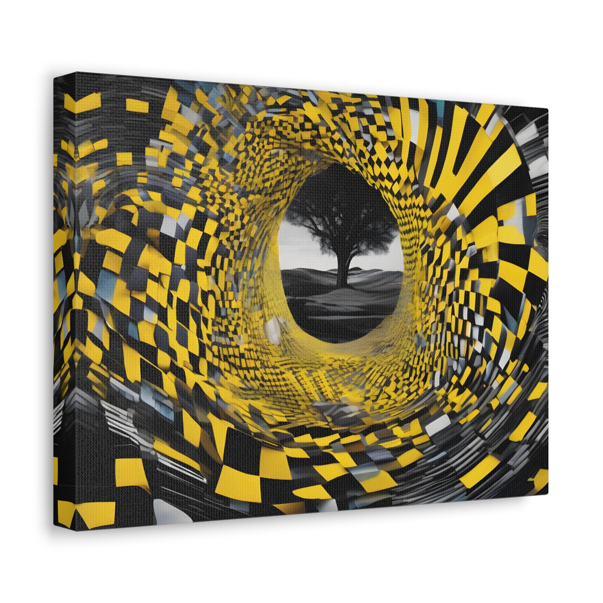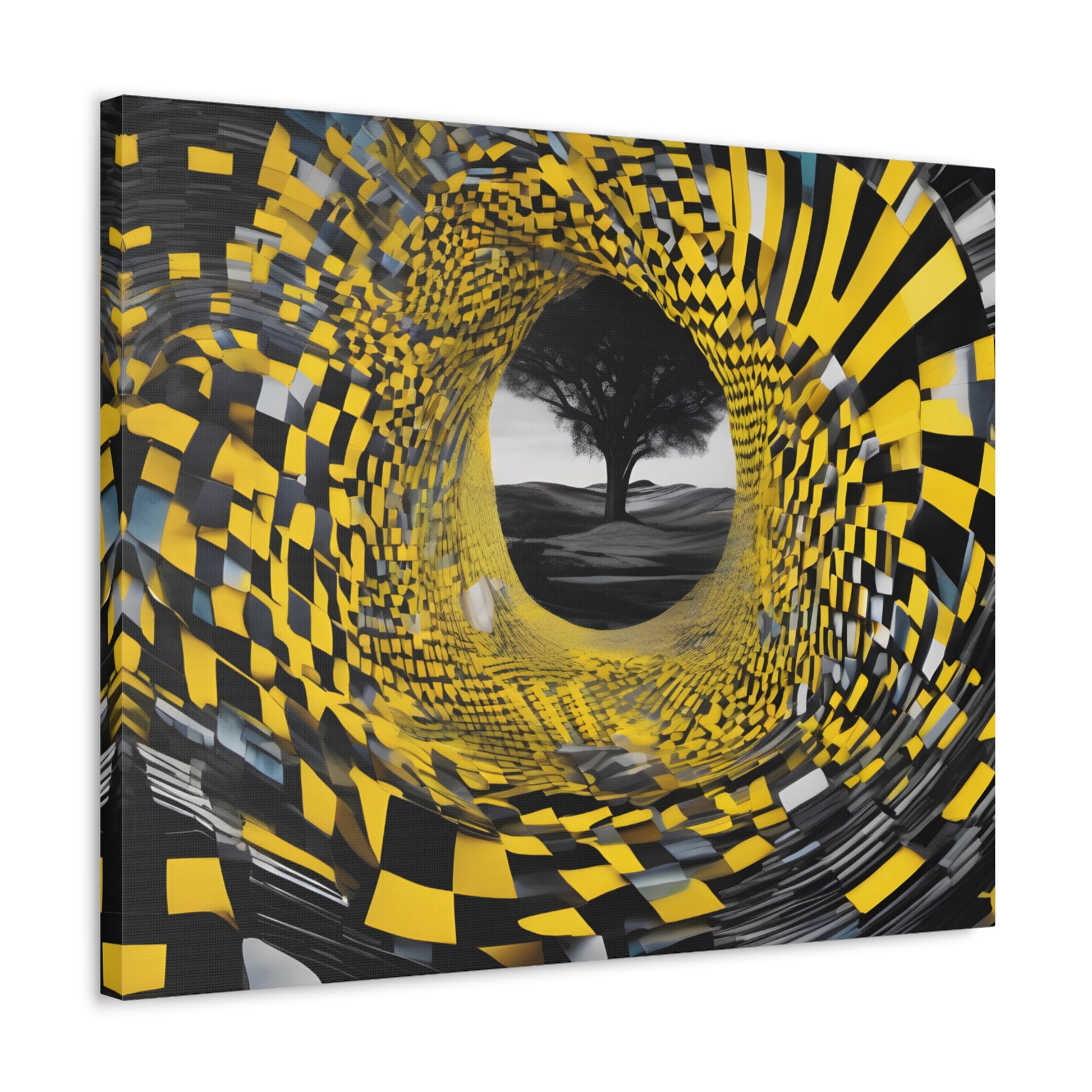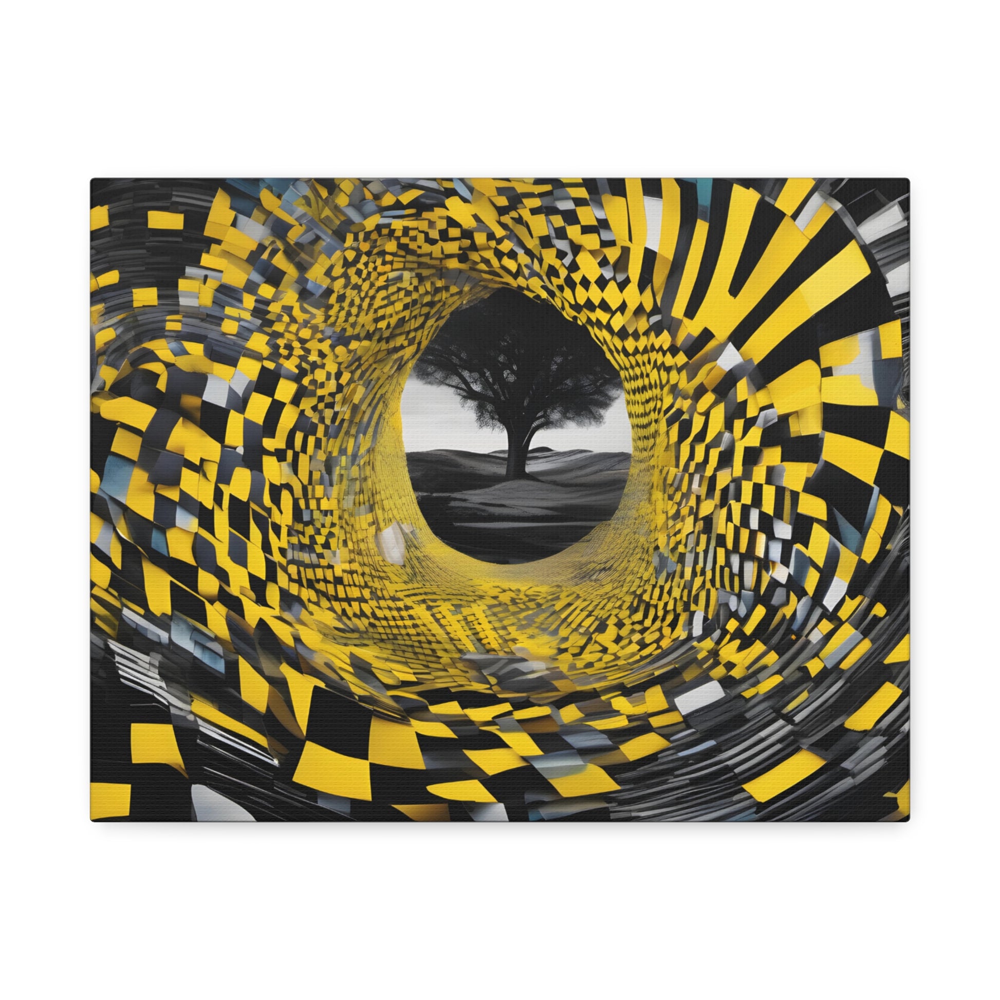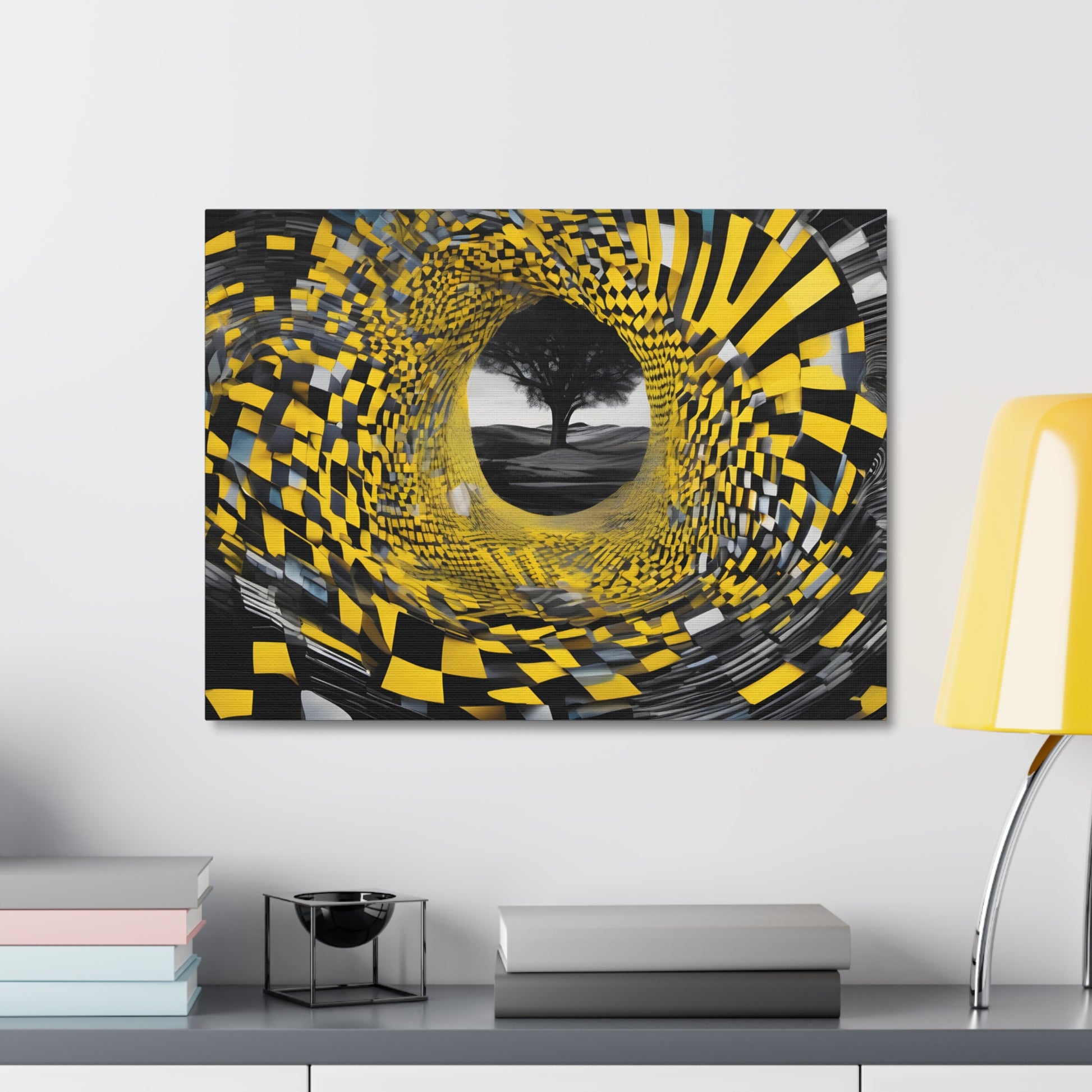 Transport yourself into a world of mystery and imagination with our yellow and black tunnel abstract art.